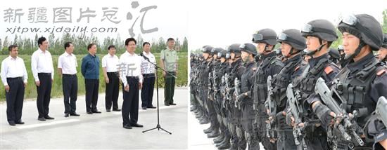 2012年7月4日上午,新疆维吾尔自治区党委书记张春贤来到驻乌鲁木齐某反恐部队,了解考察部队训练、装备、行动方面的情况,要求公安干警及各专门力量,忠诚于党、服务人民,提升能力、警惕于心,全力维护社会稳定、祖国安宁,坚决保卫各族人民的利益!