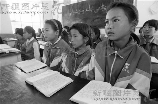 由全国少年儿童发展基金会扶持的“春蕾”计划的实施,使伊犁地区的100名失学和即将失学的儿童又走进了课堂(摄于1995年6月24日)。