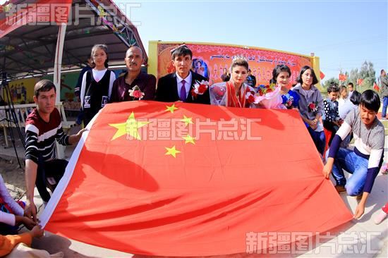 博湖新人在国旗下举行婚礼