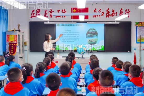 2022年月19日,在昌吉市第十小学四年级(1)班主题班会课上,老师给学生讲解保护地球的知识。
