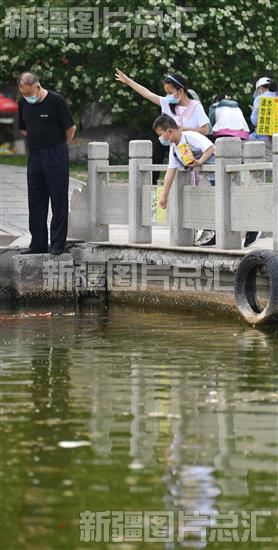 2022年5月5日,市民在乌鲁木齐市植物园游玩。