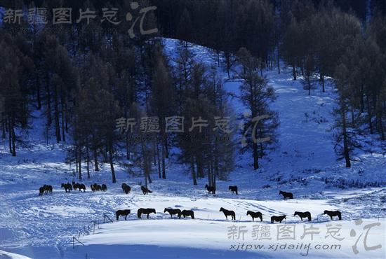 越往前走,山路越发险峻。巴合提汗爱惜马匹,最先跳下爬犁。我们也难为情地跳下来,三个人深一脚浅一脚地跟在爬犁后面。马儿独自在头前带道,选择积雪厚度合适的地方通过。巴合提汗不时小跑几步赶到马头前,帮它擦去鼻孔两边的冰碴。马儿也用头蹭蹭主人的身体,那份亲昵劲令我羡慕不已。在村子里刚看到这匹马时我曾小心翼翼地接近它,想伸手摸摸,马儿摇头晃脑的就是不让靠近。对此一直心有不甘的我,乘着休息的空儿捧起一团雪,慢慢送到马的嘴边。几个小时的共同经历让它对我产生了认同感,马儿用鼻子嗅了半天,张开嘴吃了进去。心中狂喜,我又试着用手触碰它那宽大的鼻梁,马儿默默接受了。这之后,我时不时和它并行一段路程,甚至还能牵着缰绳走一走。