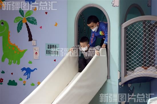 2022年12月8日,乌鲁木齐市德汇万达广场,小朋友在游乐场玩耍。