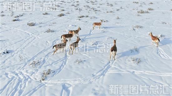 呼图壁:黄羊结伴雪中觅食