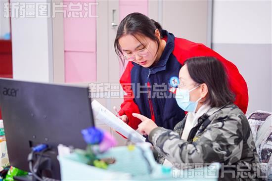 2023年1月30日,昌吉市第七中学教师课间给学生答疑解惑。