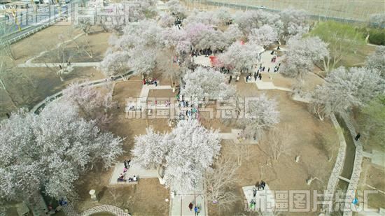 2023年3月15日,市民和游客在园丁公园赏花游玩(无人机拍摄)。