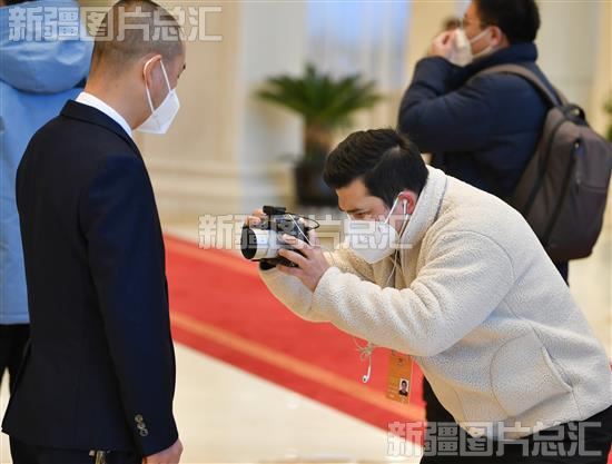 2023年1月13日,新疆广播电视台记者米尔扎提在拍摄委员的证件。