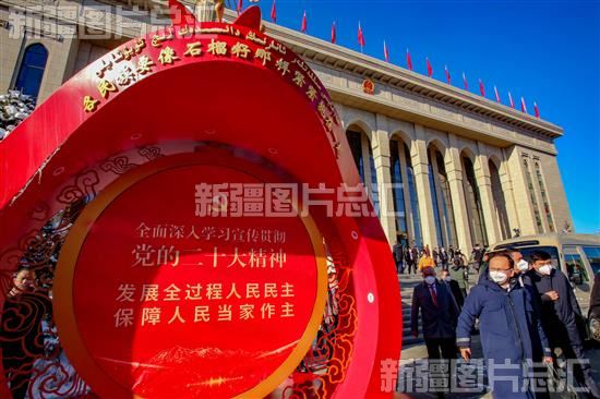 2023年1月14日,自治区十四届人大一次会议在新疆人民会堂开幕。图为与会人员走出会场。