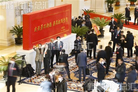 2023年1月14日,新疆维吾尔自治区第十四届人民代表大会第一次会议结束后,人大代表、政协委员走出会场,合影留念。