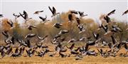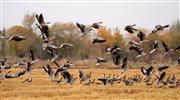 群鸟栖息水稻田