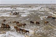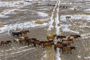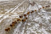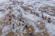 裕民县:雪原映夕阳