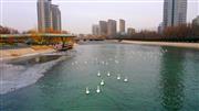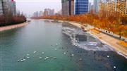 库尔勒:孔雀河结冰了